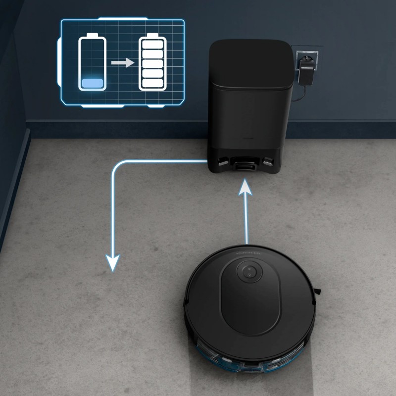 Під час прибирання великої площини автоматично повертається до станції зарядки, щоб продовжити цикл очищення.