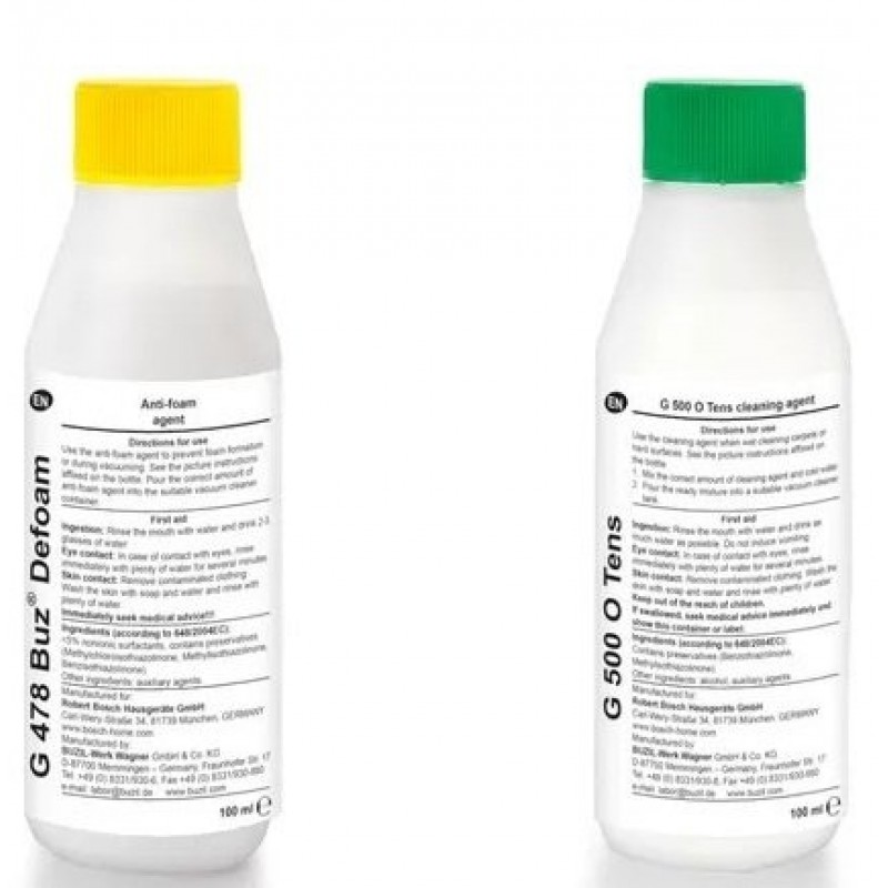 Набір розроблений для миття килимів і оббивки з усіма Bosch AquaWash & Clean пилососами. Тільки оригінальні аксесуари гарантують довготривалу роботу приладу. Пральний набір розроблений для миття килимів і оббивки з усіма пилососами Bosch AquaWash & Clean. Піногасник: має особливу формулу, яка зменшує кількість піни під час прибирання пилососом Bosch серії AquaWash & Clean. Миючий засіб: забезпечує ефективну очистку килимів і оббивки за допомогою пилососів Bosch AquaWash & Clean.