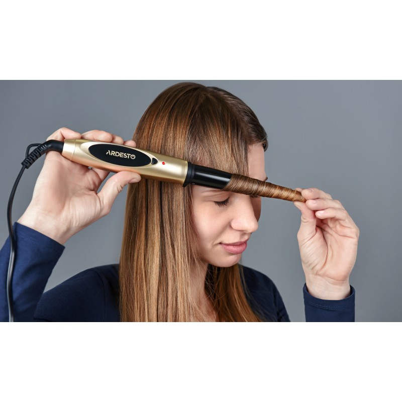 Завдяки потужності в 30 Вт та розігріву конуса до 200°C, плойка Ardesto HC-705 ідеально підходить для створення ефектних локонів. Довговічне керамічне покриття мінімізує негативний вплив високих температур на волосся і забезпечує надійний захист нагрівального елементу.
