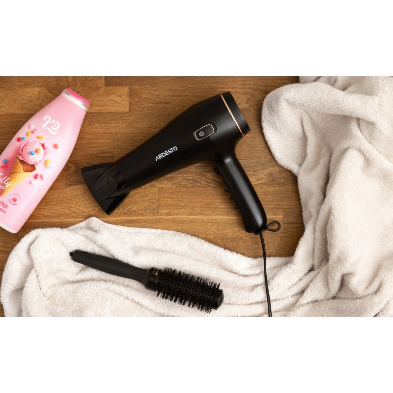 Максимальна потужність пристрою – 2100 Вт, передбачений захист від перегріву та підтримуються дві швидкості з трьома температурними режимами, які можна вибрати за допомогою клавіш управління на ручці. Знімна насадка-концентратор покращує розподіл повітряного потоку, а функція Cool Shot забезпечує більш щадну сушку ослабленого волосся холодним повітрям.