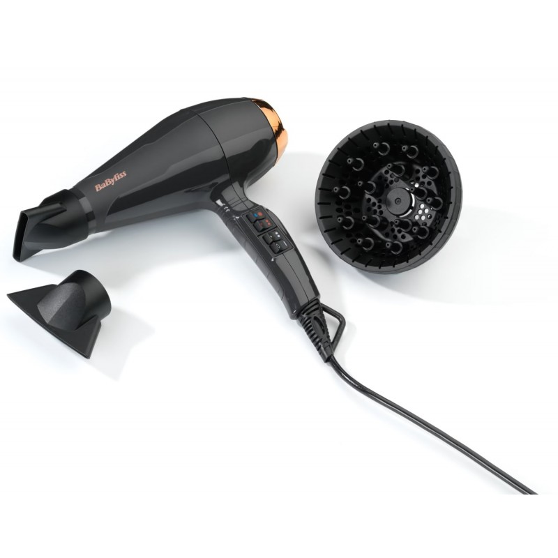 BaByliss Фен Air Pro, 2200Вт, 2 режими, дифузор, іоніз-я, хол. обдув, чорний