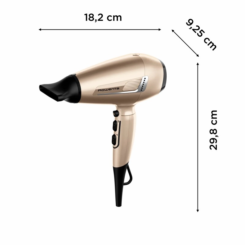 Потужний професійний двигун змінного струму потужністю 2200 Вт забезпечує концентрований повітряний потік до 126 км/год — для професійного сушіння до 2 разів швидше* та результатів салонної якості. (*тест на сприйняття порівняно зі звичайним феном, 30 волонтерів, 1 місяць, Франція 2021 р.)