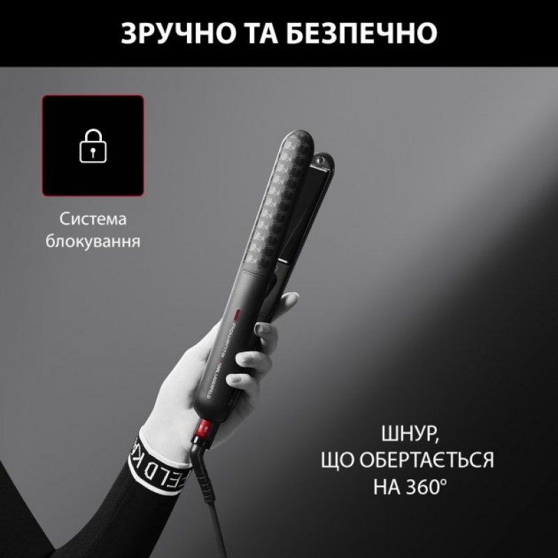 Вирівнювач для волосся Rowenta x KARL LAGERFELD Optiliss був розроблений, щоб задовольнити усі ваші потреби у укладанні завдяки універсальній функції Straight & Curl, яка створить будь-яку зачіску, яку ви забажаєте.