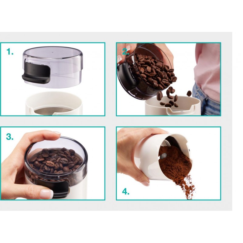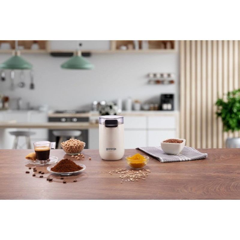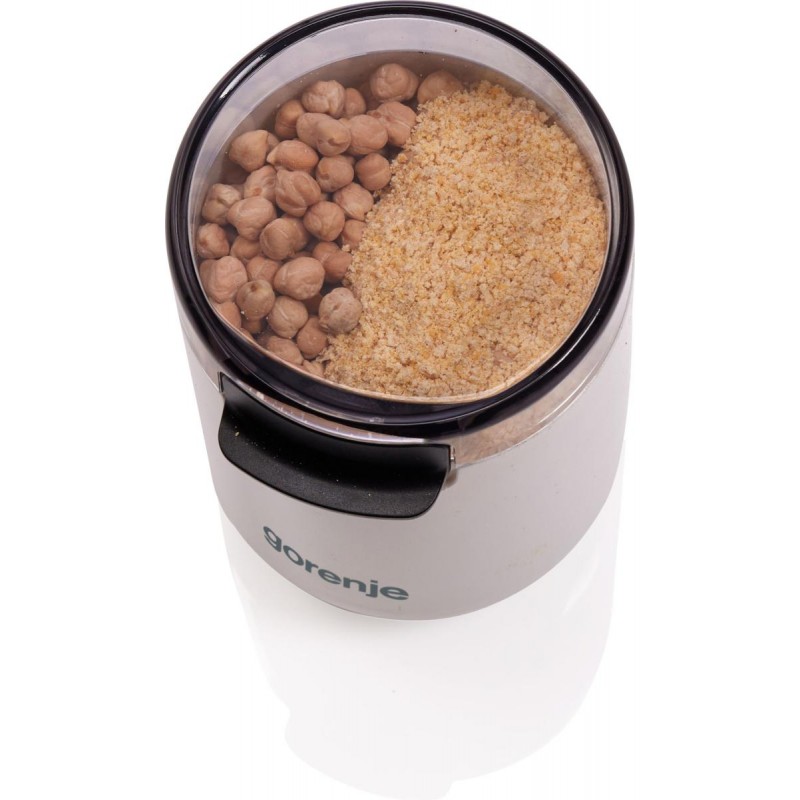 Gorenje Кавомолка роторна 150Вт, об'єм зерен-45г, 3 ступеня помолу, пластик/метал, білий