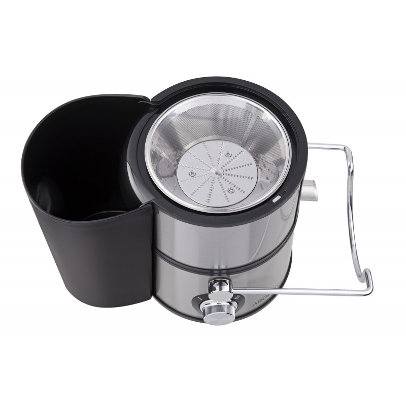 Відцентрова технологія приготування використовує спеціальну високоефективну терку та сталевий фільтр для екстракції соку. Завдяки двигуну з потужністю 1000 Вт, двом режимам роботи та функції реверсу можна швидко приготувати сік з різних фруктів, овочів, зелені та ягід.