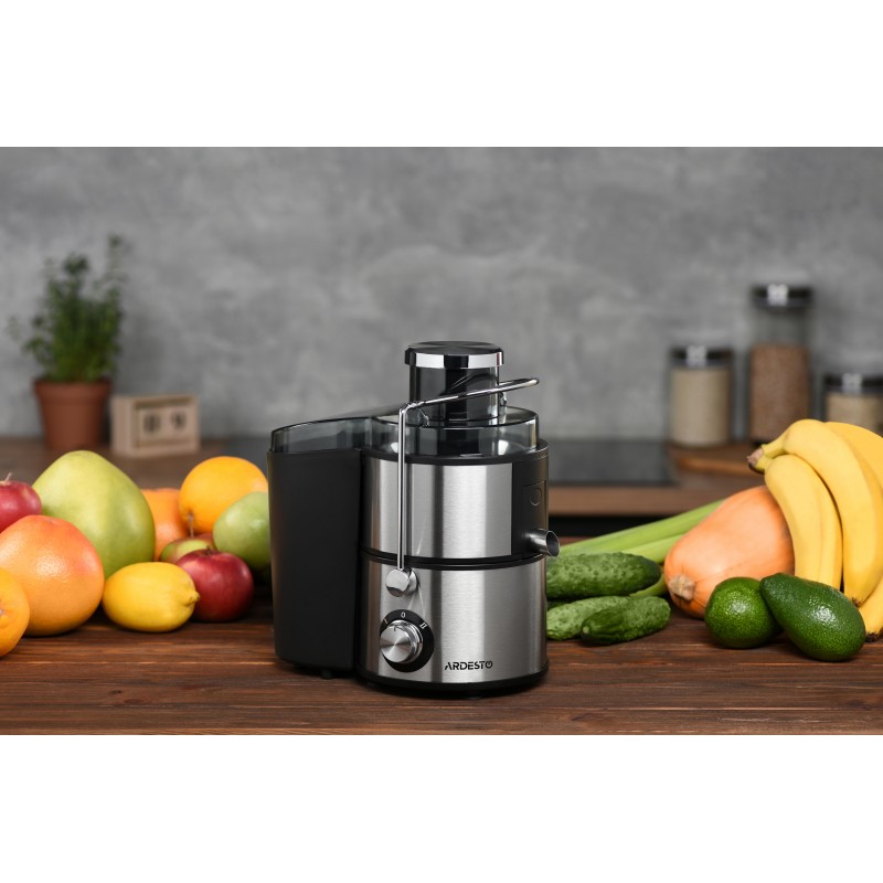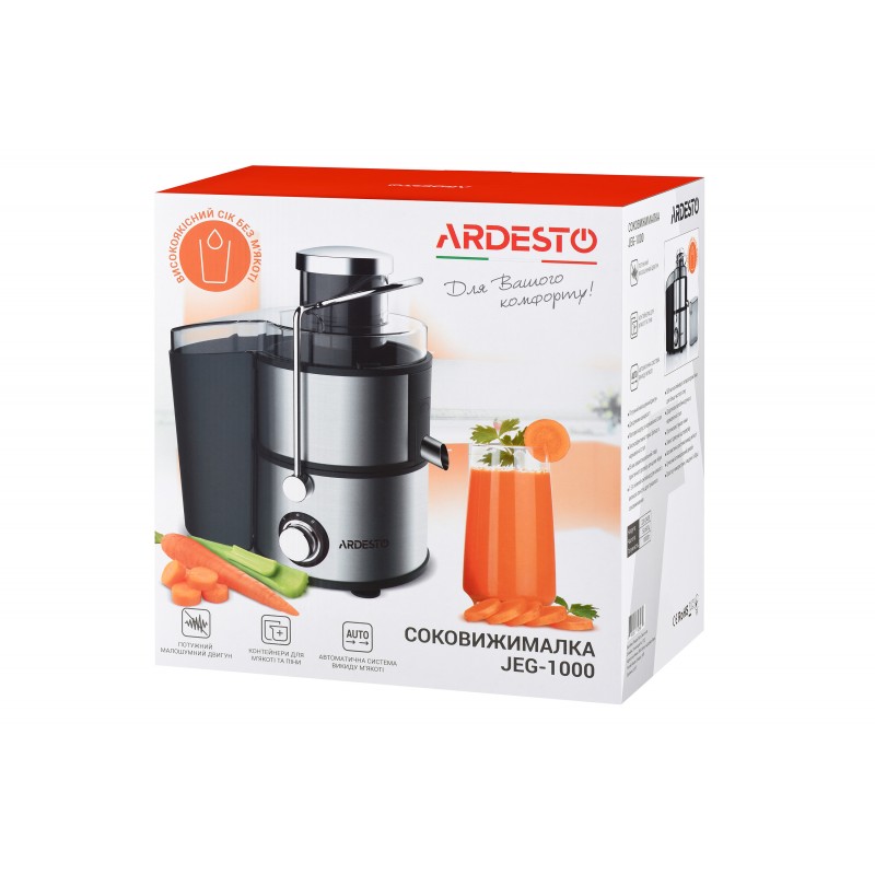 Розроблений італійськими дизайнерами, соковитискач Ardesto JEG-1000 виконаний з якісного полікарбонату та нержавіючої сталі зі шліфованою текстурою. Це поєднання підкреслює надійність та витонченість стилю, який прикрасить будь-який інтер'єр.