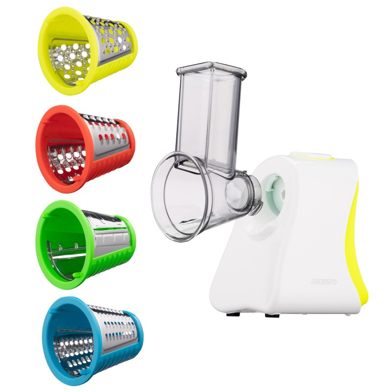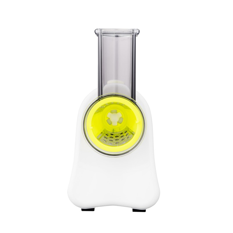 Чотири змінні насадки додають моделі універсальності. Груба шатківниця стане в пригоді для швидкого нарізання овочів для рагу чи салатів, тоді як дрібна забезпечить ніжну текстуру для гарнірів або дитячого харчування. Подрібнювач оптимально згодиться для роботи з горіхами, шоколадом чи овочами, а слайсер стоврить бездоганно рівні скибочки для сервірування.