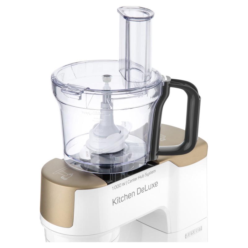 Багатофункціональний кухонний комбайн об'ємом 1.25 л з 4 насадками та подрібнювачем.
