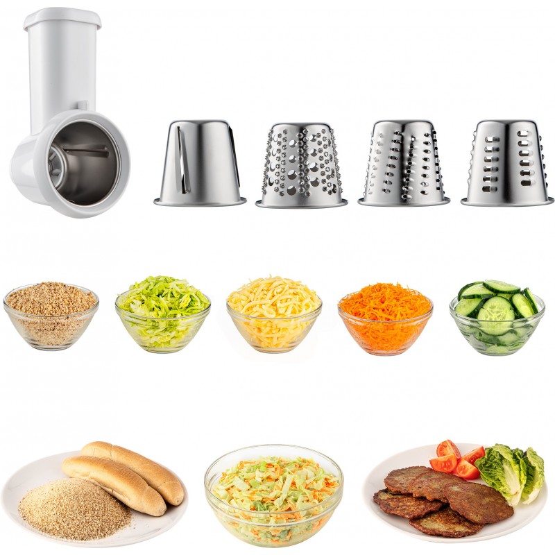 4 масивні барабанні терки з неіржавкої сталі для чудового дрібного і грубого шинкування, нарізання скибочками, приготування тертих сухарів, натирання картоплі тощо.