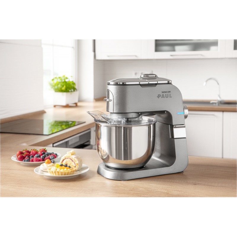 - Чаша з неіржавкої сталі 6 л зі шкалою і ручкою /до 4 кг тіста для здобного кексу і до 2,6 кг хлібного тіста / 3 металеві насадки для замісу, збивання, легкого тіста і кремів.