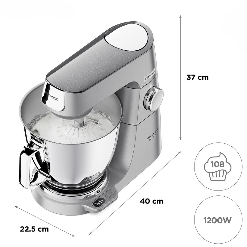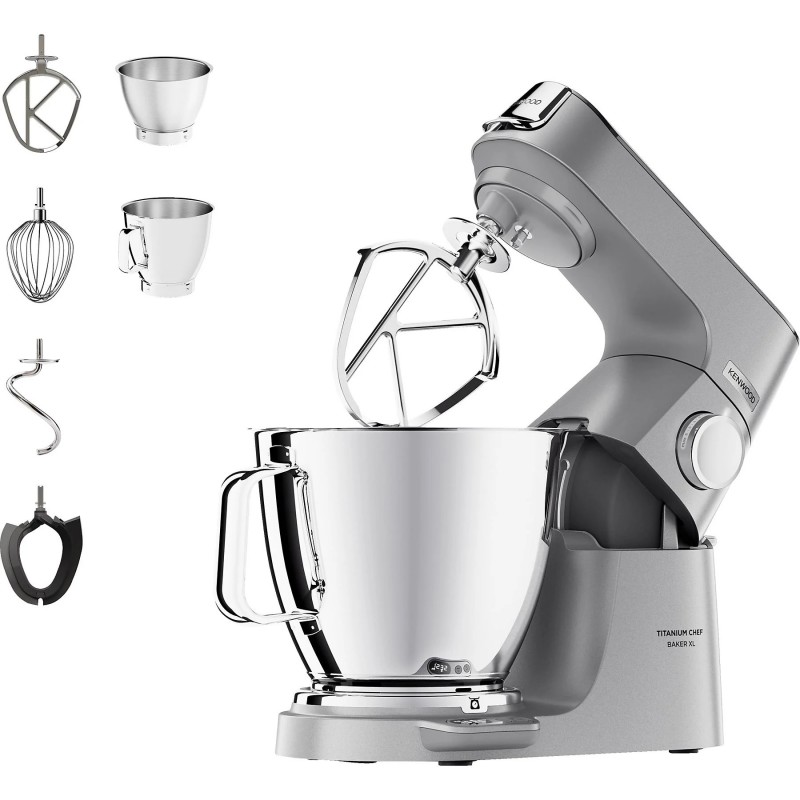 Kenwood Кухонна машина Titanium Chef Baker, 1200Вт, чаша-метал, корпус-метал, насадок-3, вбудовані ваги, дисплей, срібний