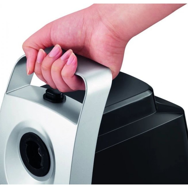 За одну хвилину вона здатна переробити до 1,7 кг продуктів різної твердості, включаючи жорстке м'ясо. Хорошу стійкість приладу забезпечують прогумовані ніжки, а безвідмовну і безпечну роботу — гострі самозаточувані ножі і опція реверс. Електром'ясорубка управляється за допомогою однієї кнопки-перемикача, також користувач може вибирати ступінь подрібнення і тип обробки, використовуючи відповідну насадку.