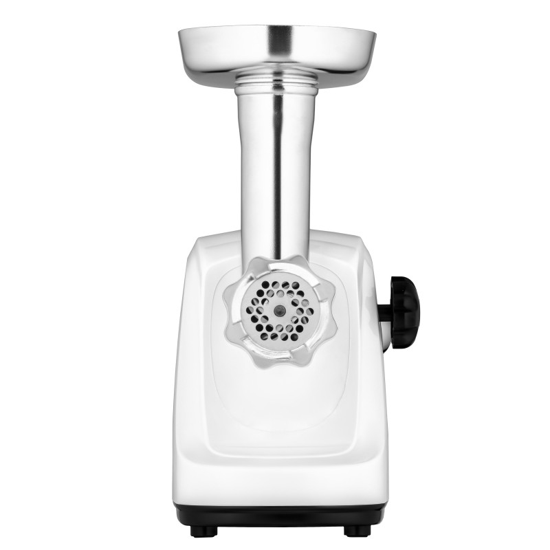 Кожна деталь м’ясорубки продумана до дрібниць: на широкий завантажувальний отвір кріпиться ємний лоток; ергономічний штовхач вирізняється зручністю, а шнек за потреби знімається. Приємний бонус – комплект додаткових насадок, які стануть у пригоді для приготування домашніх ковбасок та смачного кеббе. Це забезпечує безмежний простір для кулінарної творчості.