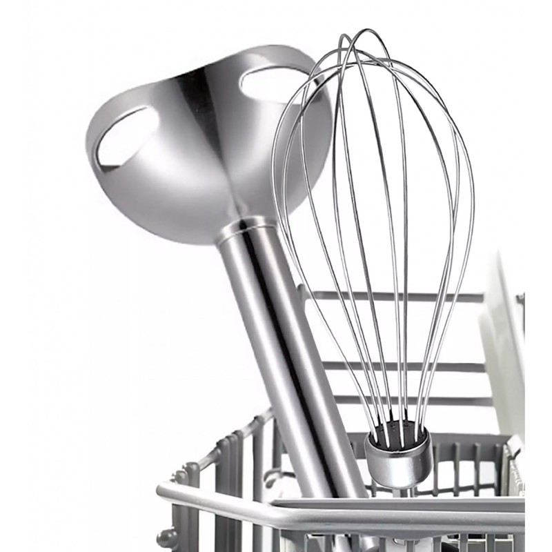 За допомогою універсального подрібнювача такі інгредієнти як зелень, горіхи, м'ясо та цибуля подрібнюються за кілька секунд. За допомогою вінчика Ви можете збивати яєчний білок та легкий крем для десертів, замішувати тісто для млинців.