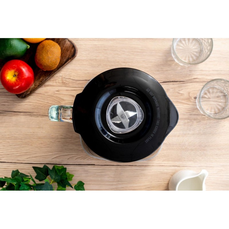 Скляний глечик 1,8 л із мірними позначками і маленьким мірничком у верхній частині кришки. Глечик безпечно мити у посудомийній машині.