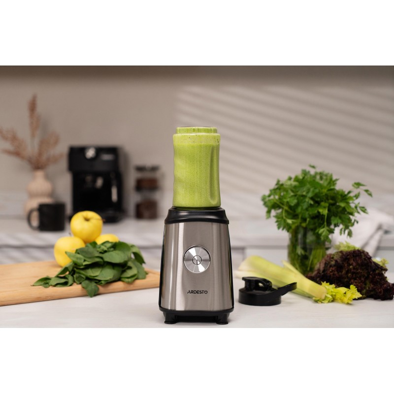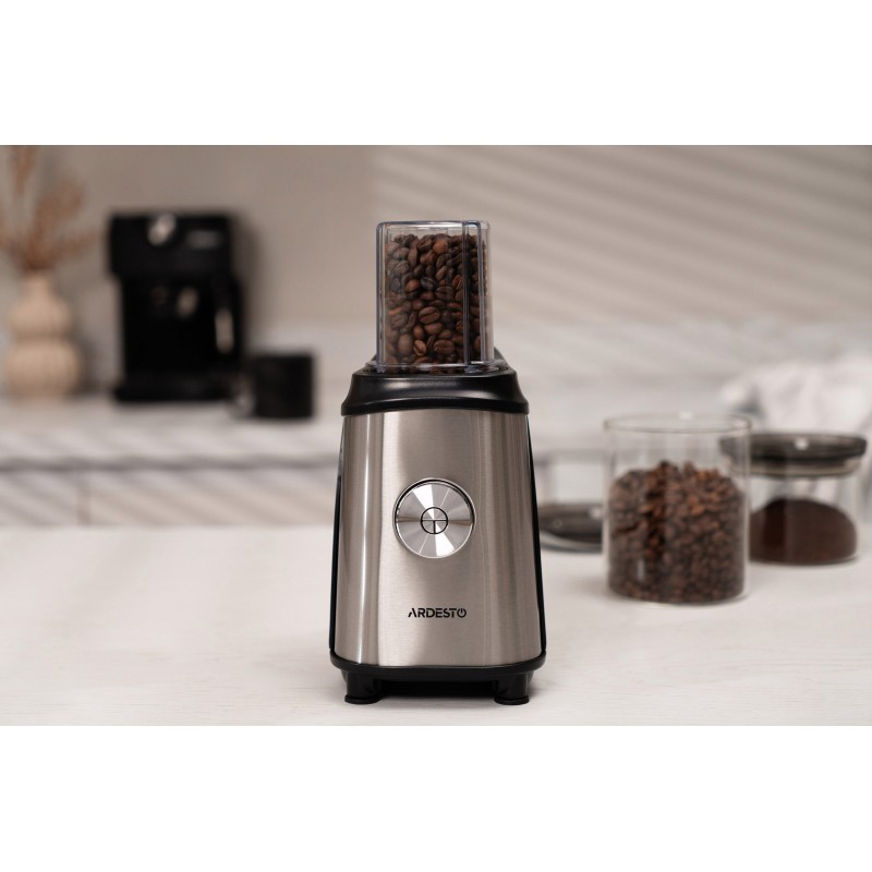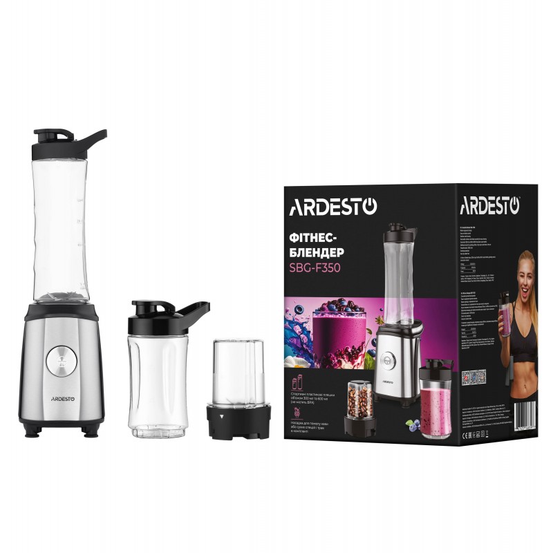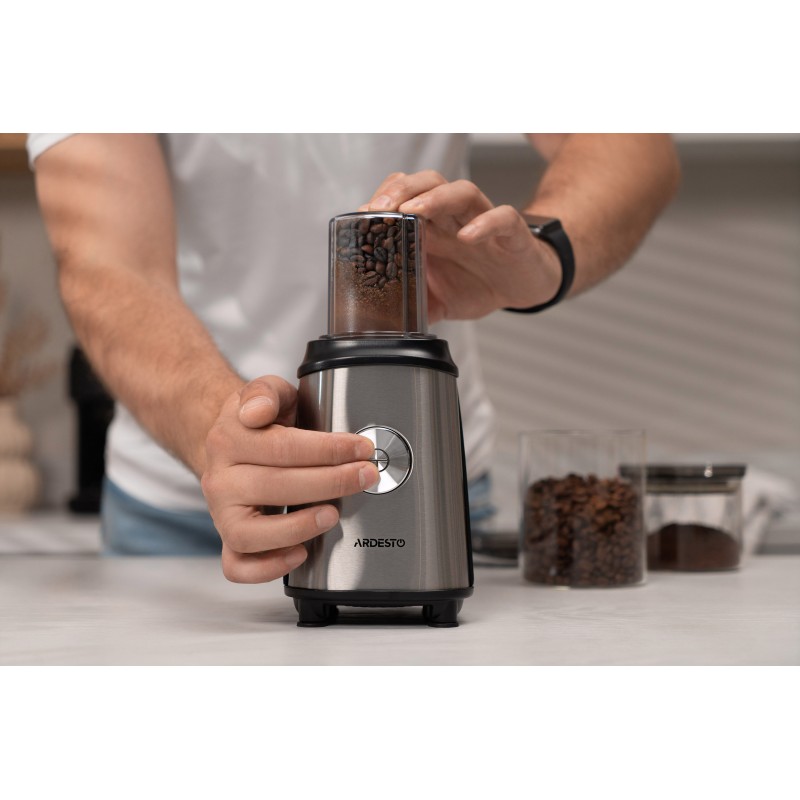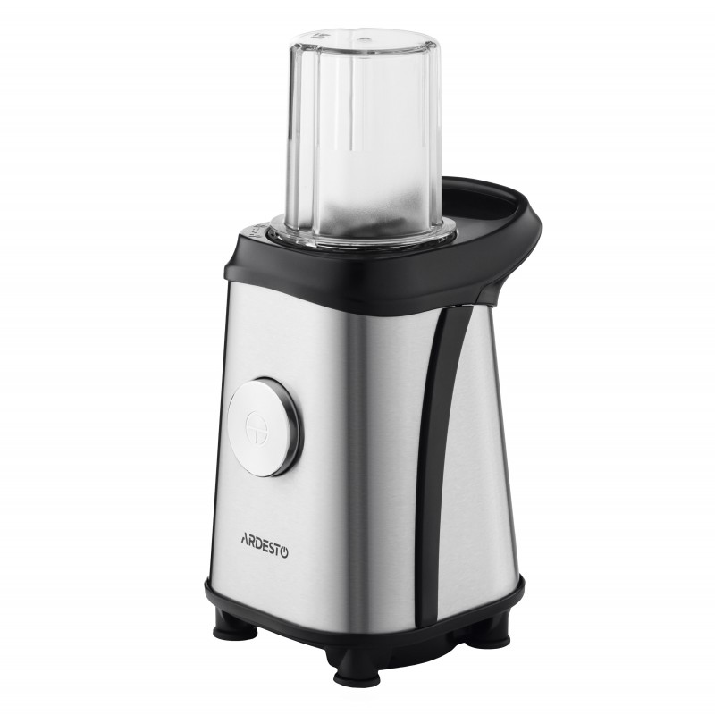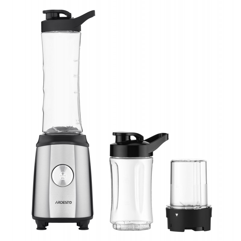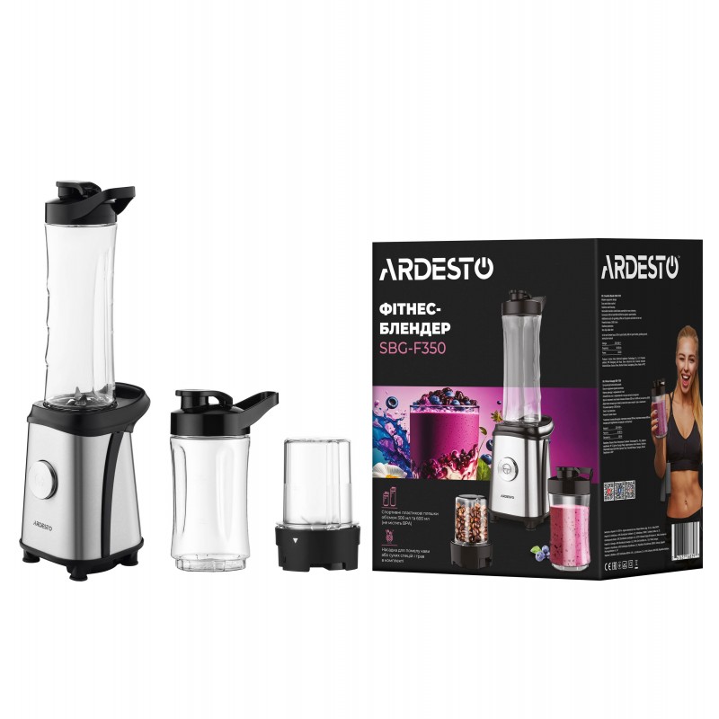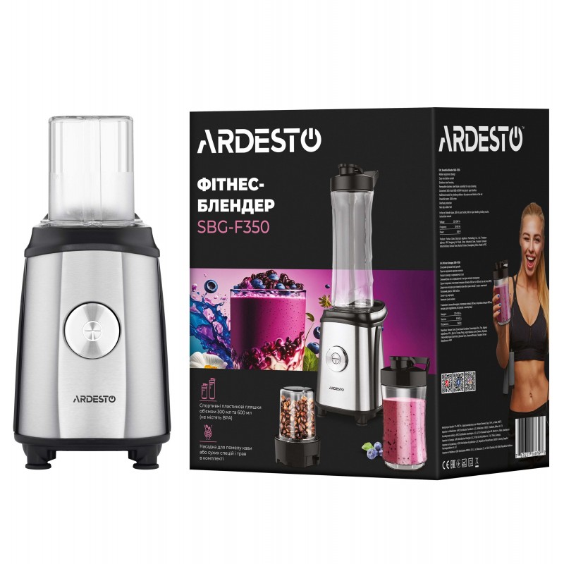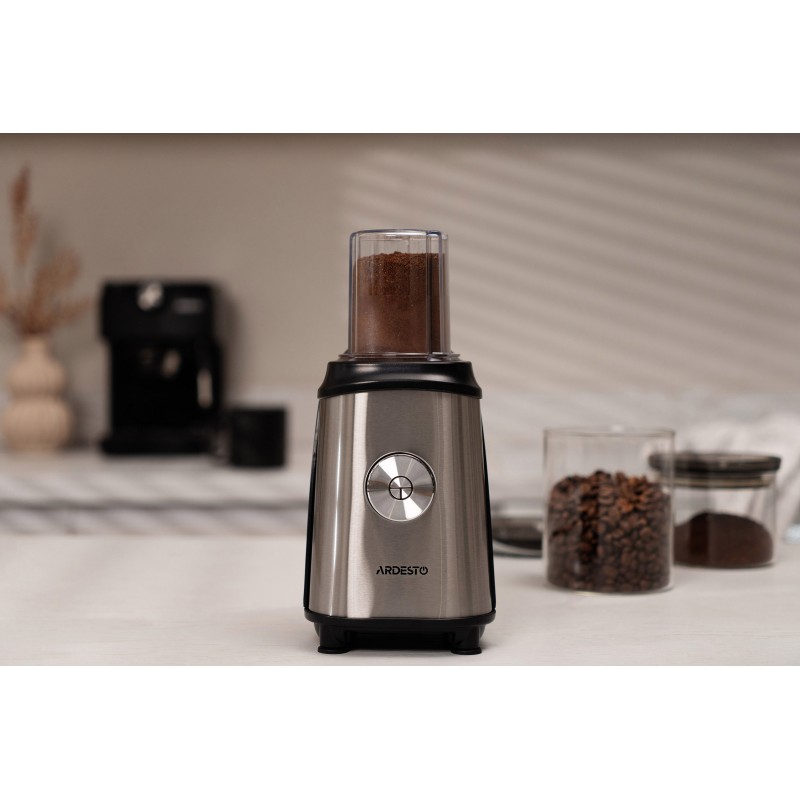 Блендер для смузі Ardesto SBG-F350, 350Вт,2в1, пляшка -600мл, пляшка -300 мл, кавомолка , чорно-сріблястий