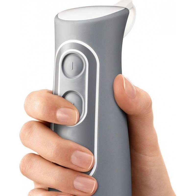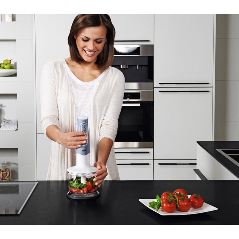 Braun MQ535 Sauce — це універсальний кухонний помічник для швидкого та акуратного приготування домашніх страв. Завдяки потужному мотору 600 Вт він легко подрібнює овочі, збиває креми та змішує інгредієнти до ідеальної консистенції. Технологія SplashControl зменшує бризки, забезпечуючи чистоту робочої зони, а ергономічна ручка з м’яким покриттям зручна для тривалого використання.