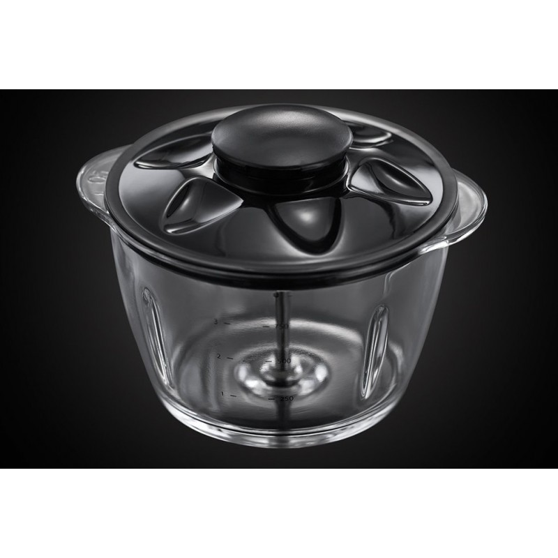 А скляна чаша, ємністю 500 мл, з кришкою зручна для зберігання подрібнених продуктів.