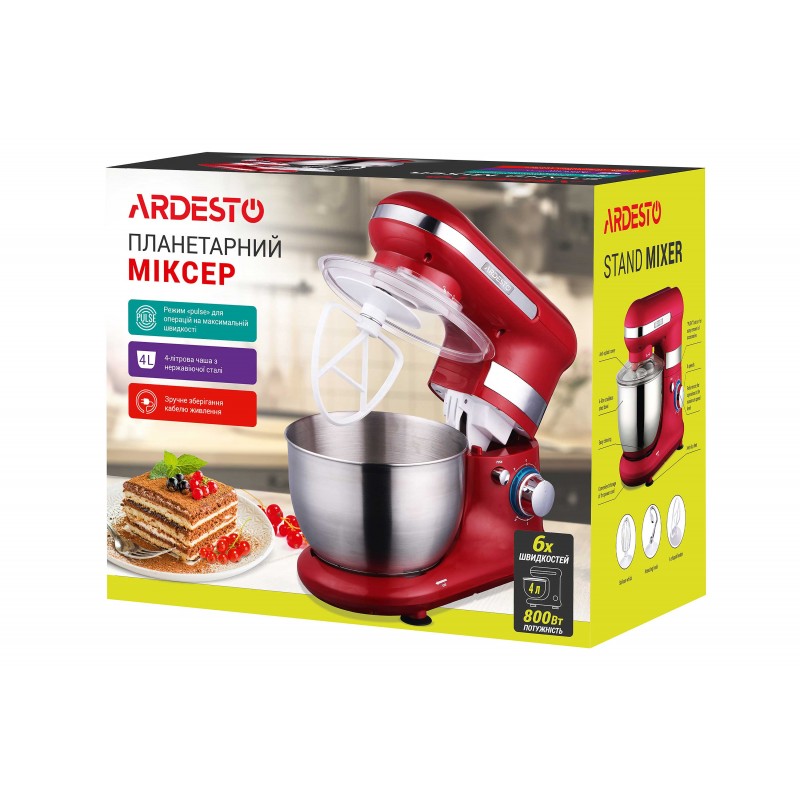 ARDESTO Міксер планетарний KSTM-8044, 800Вт, насадки -3, чаша -нерж., сталь, 4л , PULSE-режим, жовтий