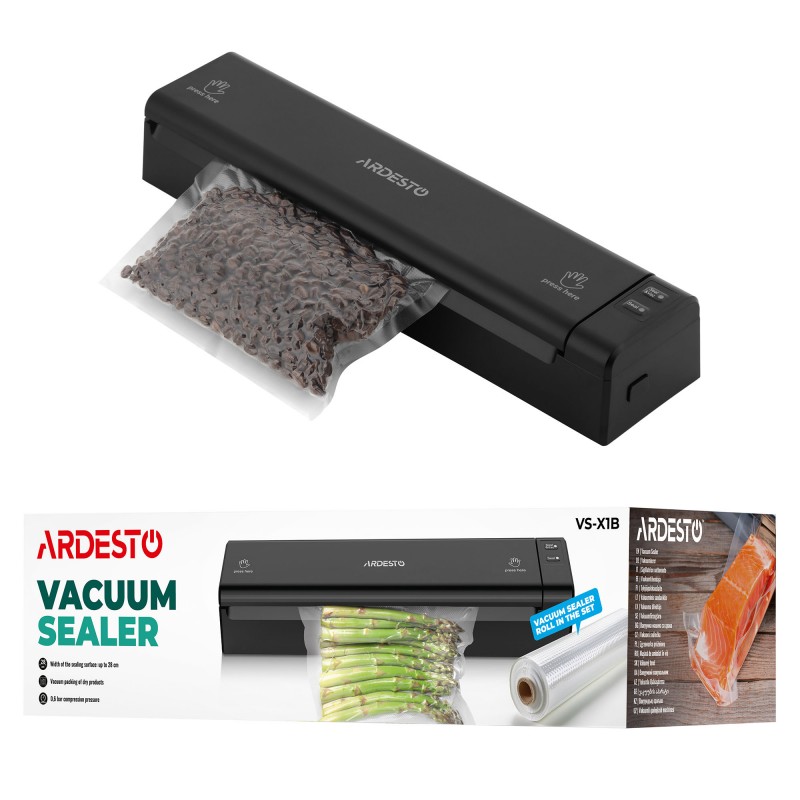 ARDESTO Вакууматор для пакетів та рулонів, 110Вт, 28см, електронне, + 1 рулон, пластик, чорний