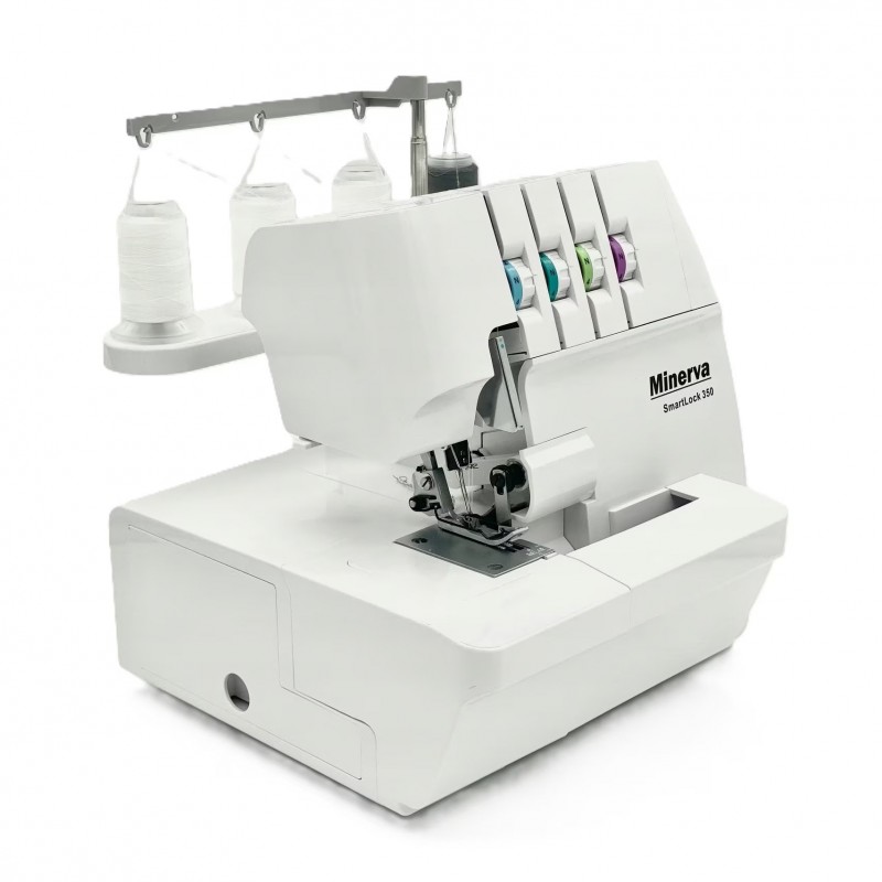 Minerva Оверлок SmartLock 350, 91Вт, 13 оп., (4, 3, 2-х ниткові шви), білий