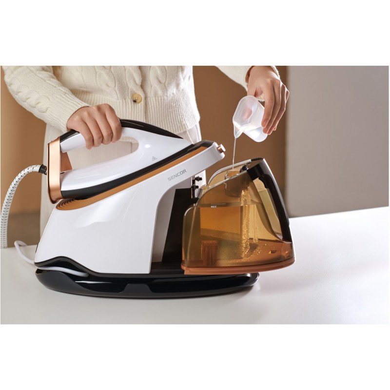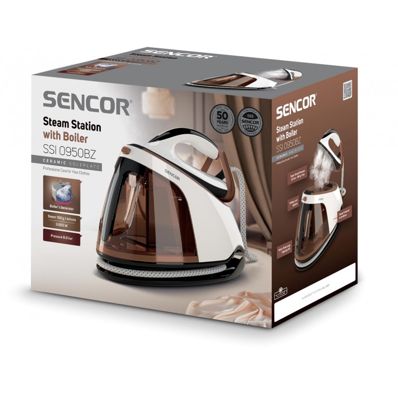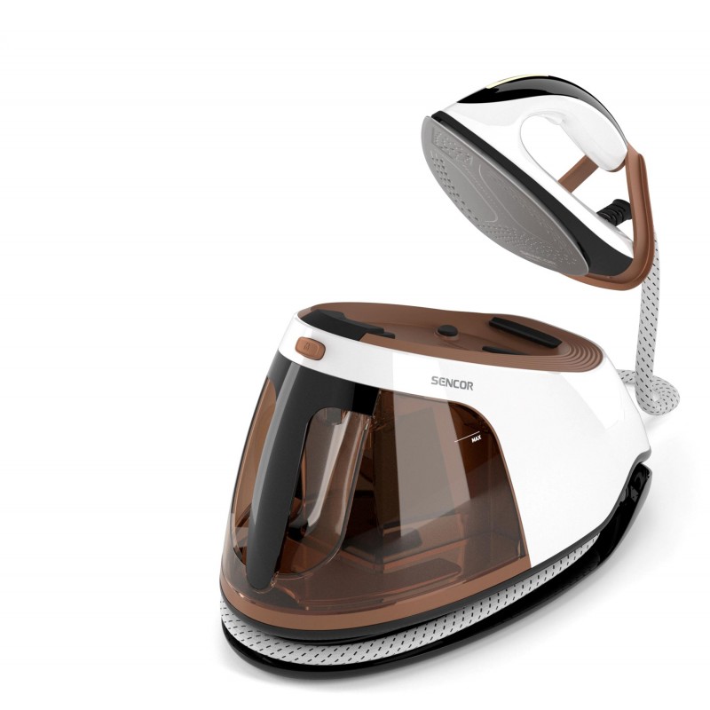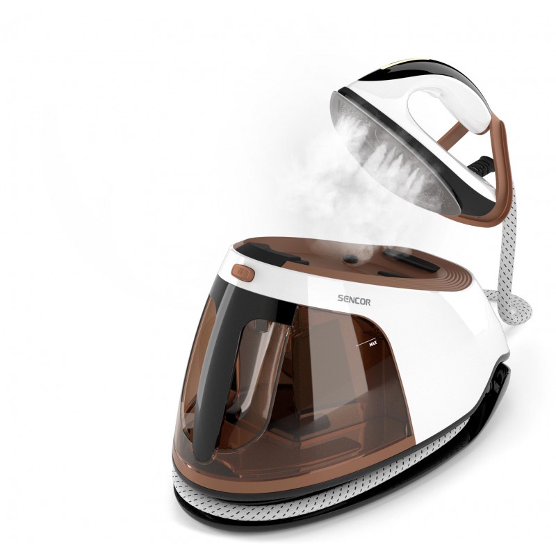 Sencor Праска-парогенератор, 3000Вт, 1500мл, паровий удар -430гр, постійна пара - 160гр, Anti-calc, керам. підошва, біло-коричневий