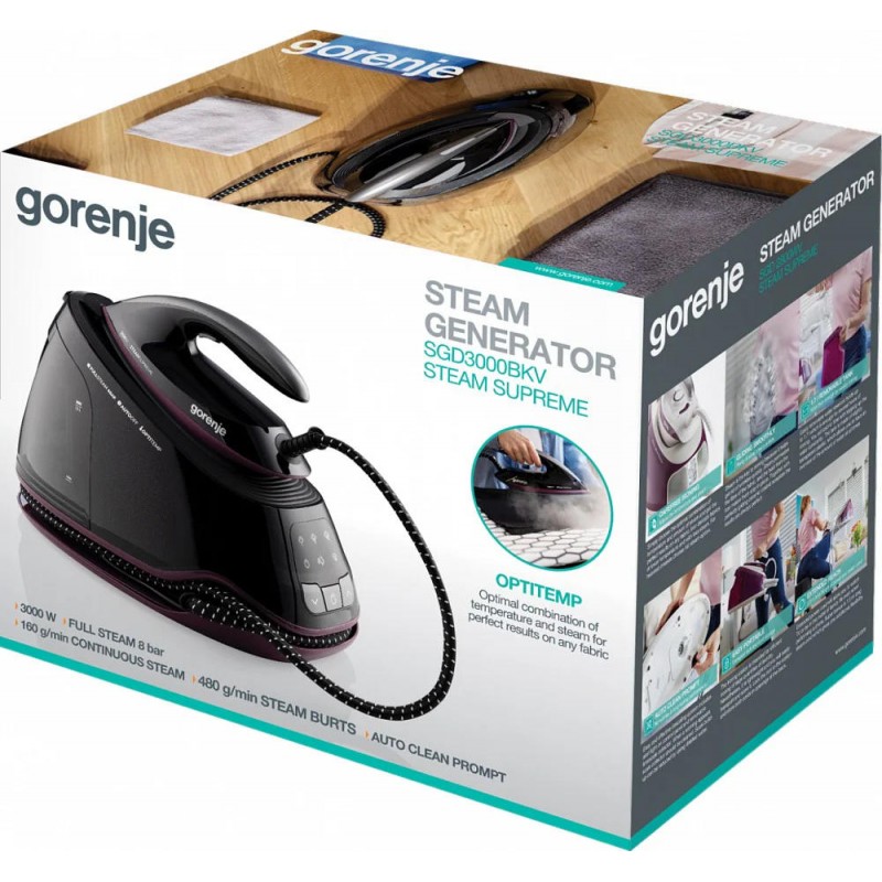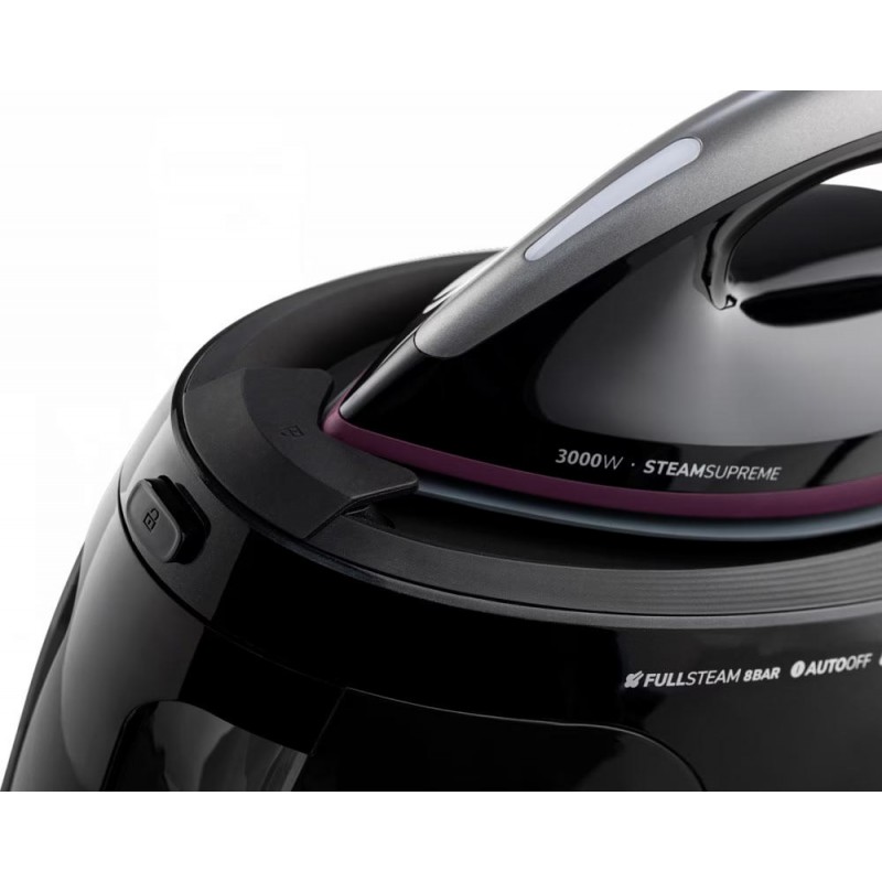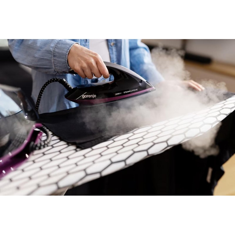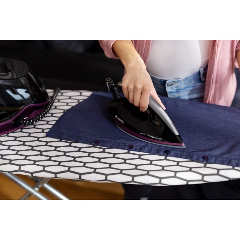 160 г/хв пари постійно та до 480 г/хв парового удару. Чим більше пари, тим швидше прасування. Потужна пара проникає глибоко в тканину та полегшує роботу. Кількість пари можна налаштувати відповідно до потреб.