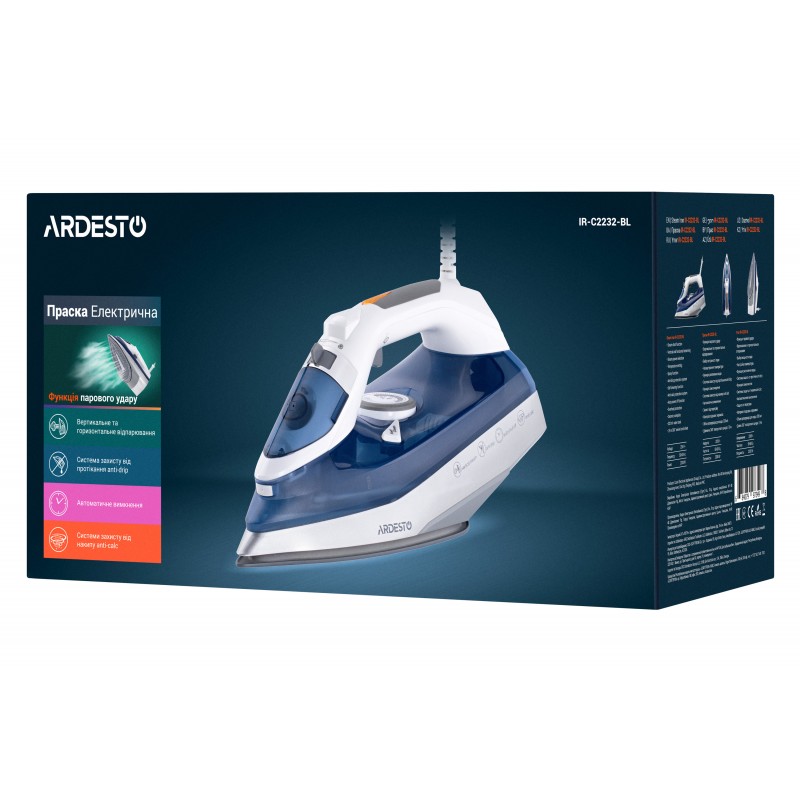 ARDESTO Праска IR-C2232-BL, 2200Вт, 320мл, паровий удар, керам. підошва, синій