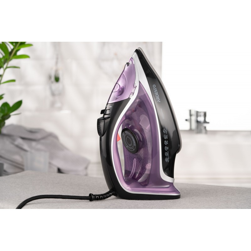 Модель ARDESTO IR-B2234 оснащено збільшеним резервуаром для води об’ємом 350 мл та ергономічною кришкою для максимальної зручності наповнення. Передбачено систему від протікання «протикапля». Стійка до пошкоджень керамічна підошва з 86 перфорованими отворами рівномірно нагрівається та плавно ковзає в будь-якому напрямку. Завдяки захисту від кальцинації буде збережено високу ефективність відпарювання та надійну роботу праски на довгі роки.