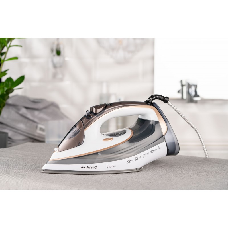 ARDESTO Праска IR-B2245-E, 2400Вт, 400мл, паровий удар, електр. керування, керам. підошва, біло-сірий
