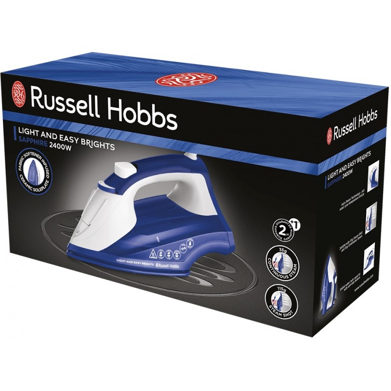Russell Hobbs Праска Light&Easy Brights Sapphire, 2600Вт, 240мл, паровий удар -115гр, постійна пара - 35гр, керам. підошва, темно синій