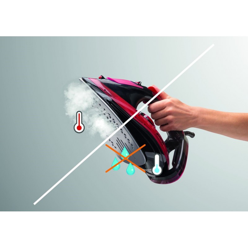 Прасуйте, не хвилюючись, що залишаться плями від крапель води. Завдяки системі, яка запобігає капанню води з підошви, ви можете прасувати делікатні тканини при низьких температурах і ні про що не хвилюватися. Жодних плям і кращі результати.