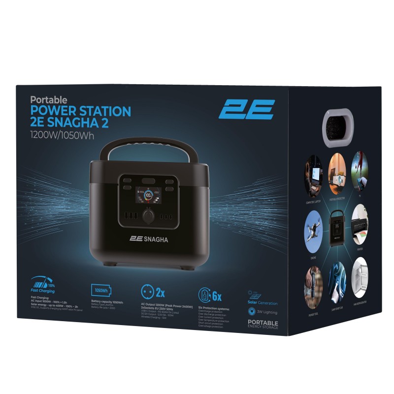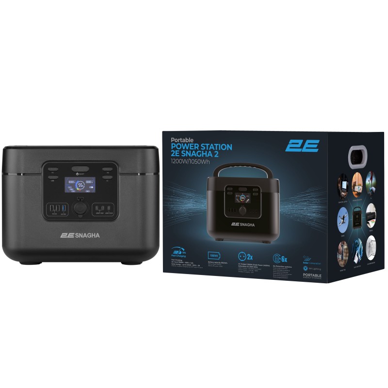 2Е Snagha 2 спроєктовано так, аби заряджати ще більше пристроїв, ніж її популярна попередниця. Широкі конструктивні можливості разом із номінальною потужністю інвертора із чистою синусоїдою 1 200 Вт забезпечують ефективну продуктивність.