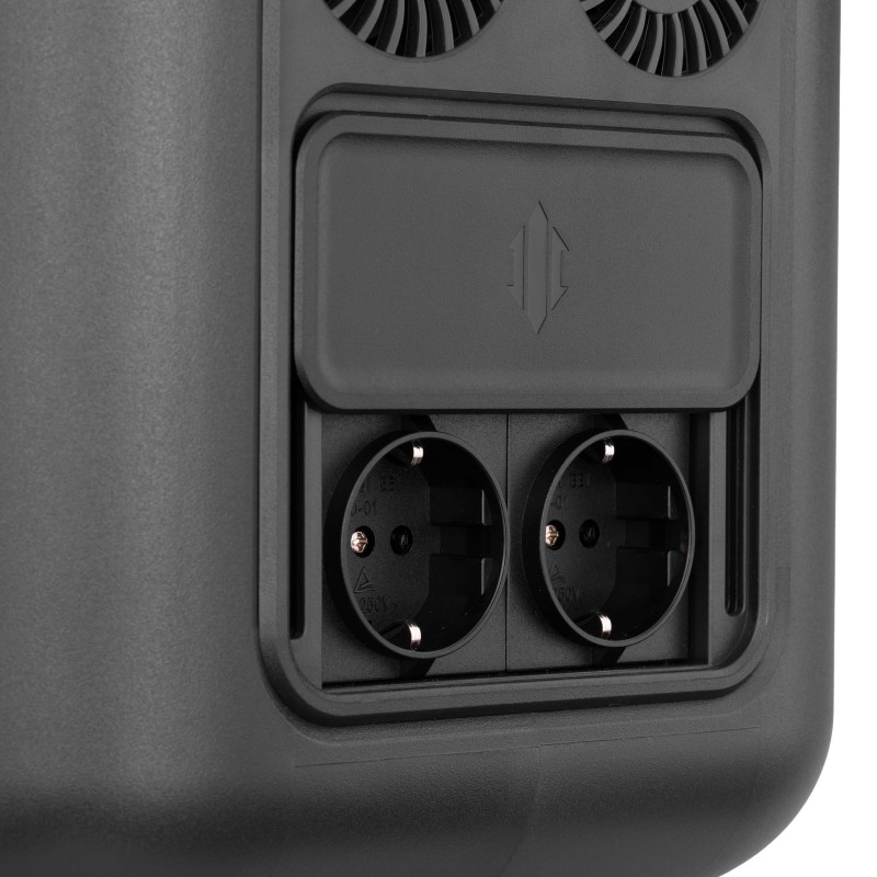 Сучасні, безпечні та довговічні елементи живлення типу LiFePO4 (клас А) – запорука тривалого слугування пристрою навіть за інтенсивного використання. Дві розетки змінного струму 220 В типу Schuko із заземленням значно розширюють кількість видів споживачів, які можна заживити.