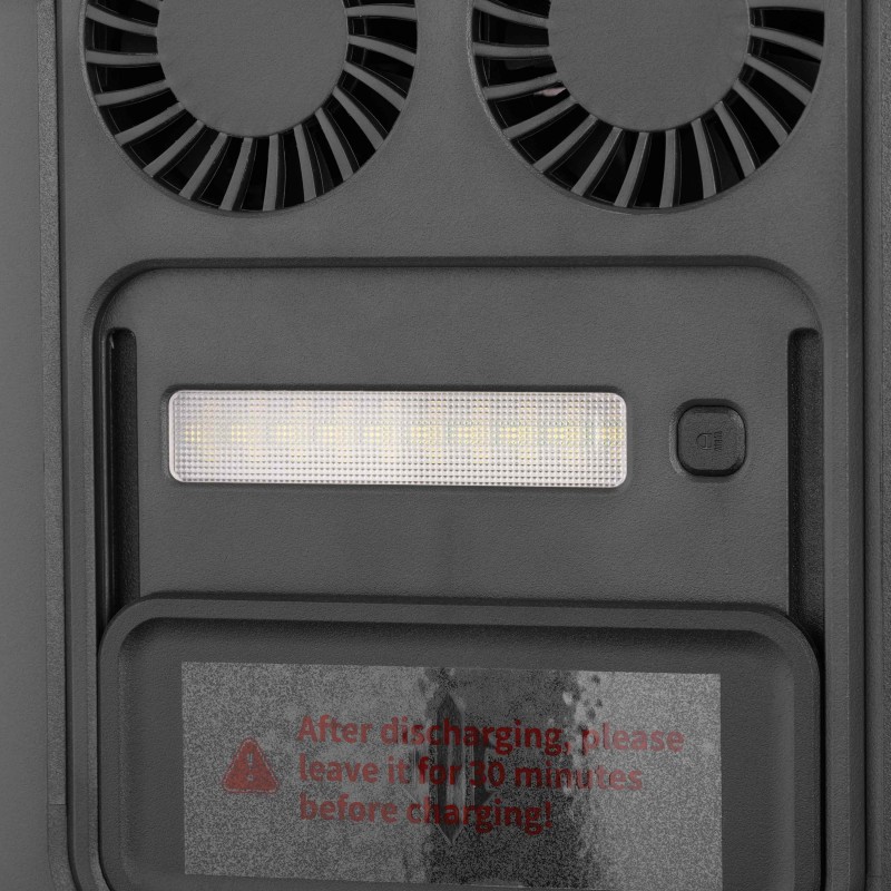 Вбудований ліхтарик може слугувати додатковим джерелом освітлення. Ергономічні руків’я з боків зумовлюють зручність транспортування. Конструкцією передбачено вбудоване відділення з кришкою для зберігання всіх необхідних кабелів і перехідників.