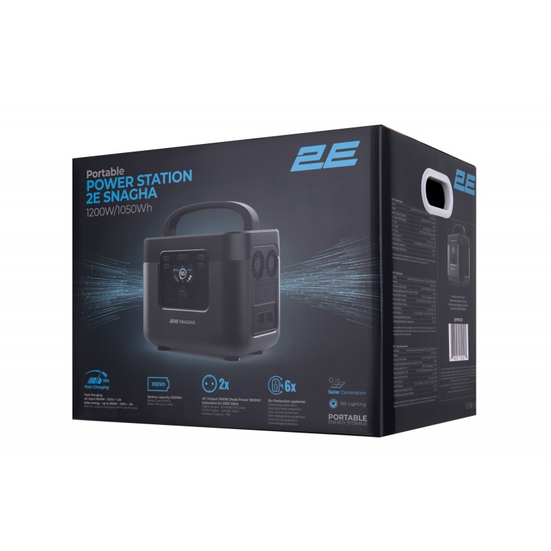 Одна з головних особливостей електростанції – швидке й інтелектуальне заряджання від мережі 220 В або будь-якого іншого джерела змінного струму, зокрема генератора, до 1 000 Вт. Саме це зумовлює можливість зарядити станцію від 0 % до 80 % лише за 60 хв, а до 100 % – за 1,5 год! При цьому 2Е SNAGHA не споживає пікової потужності в момент запуску, а робить це дискретно, «вимірюючи» можливості мережі, і не створює стартових пікових навантажень.