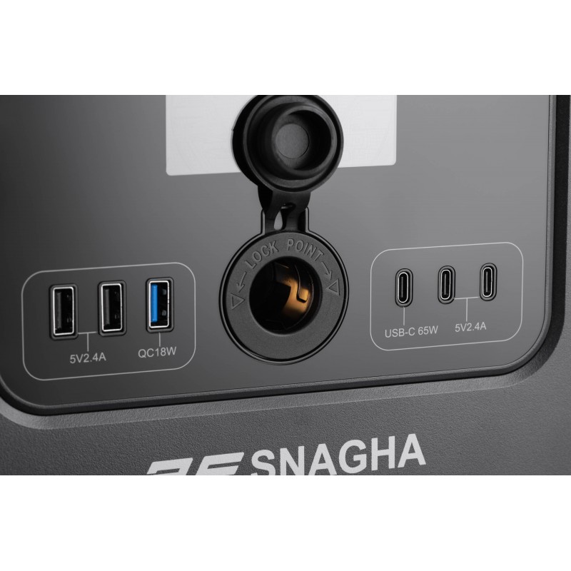 Завдяки функції бездротового заряджання (15 Вт) можна швидко відновлювати заряд мобільних пристроїв без додаткових кабелів, при цьому її реалізовано окремо від інших рознімів постійного струму (USB), що дає змогу використовувати верхню кришку зарядної станції як столик для девайсів, які заряджають. Крім того, є і інші особливості конструкції, що забезпечують зручність використання 2Е SNAGHA, зокрема: вбудований ліхтарик стане в пригоді як додаткове економічне джерело освітлення, а наявність широкого складаного руків’я зумовлює комфорт під час перенесення.