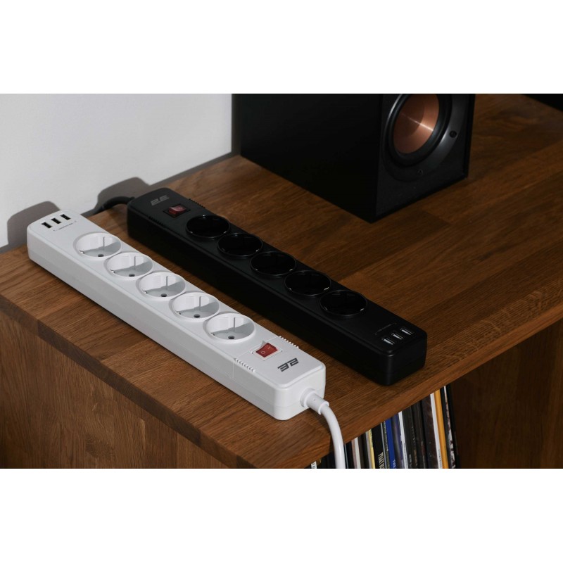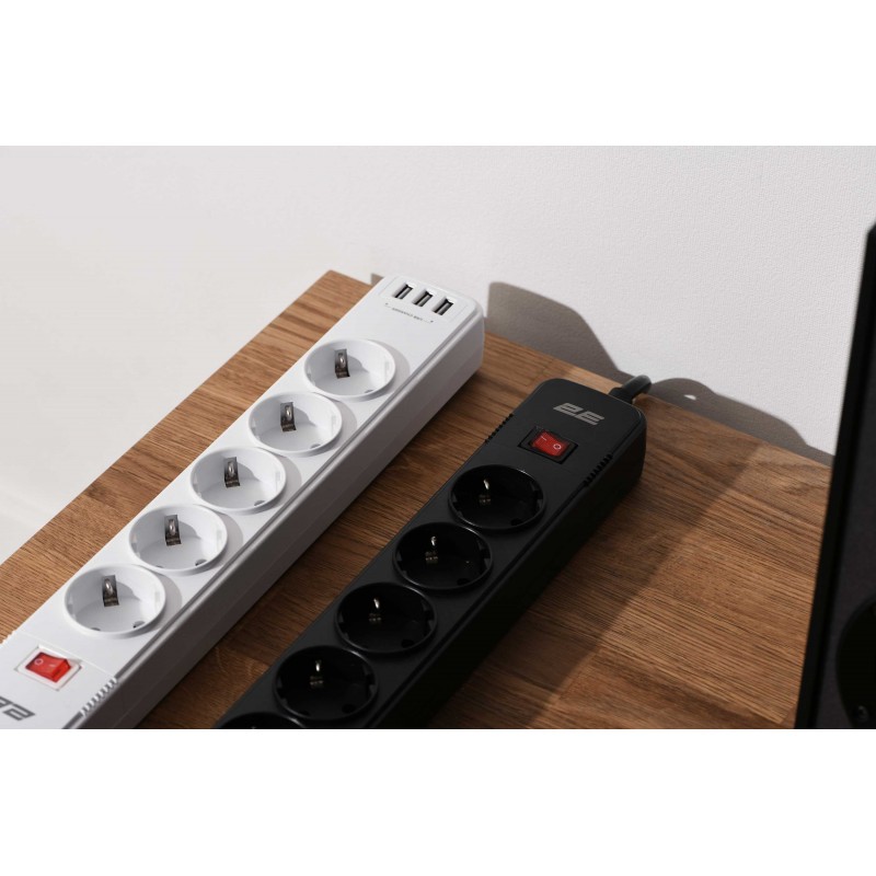 Функція захисту реалізована так: панель зі швидкоплавним варистором у разі сплеску напруги або перевантаження плавиться і роз’єднує ланцюг живлення. Також передбачено захист від дітей (захисні шторки). Ергономічний дизайн, стриманий чорний колір виконання є запорукою того, що пристрій пасуватиме чи не до будь-якого інтер’єру: як офісного, так і домашнього. Надійність і привабливий дизайн вдало втілені в мережевому фільтрі 2E SP515M2USBBK.