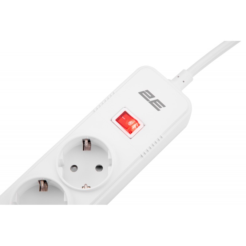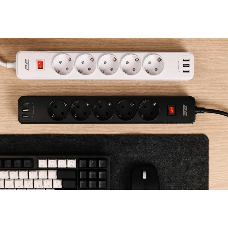 2E Мережевий фільтр 5XSchuko із захистом від імпульсних стрибків напруги, 3G*1.5мм, 3*USB-A, 2м, white