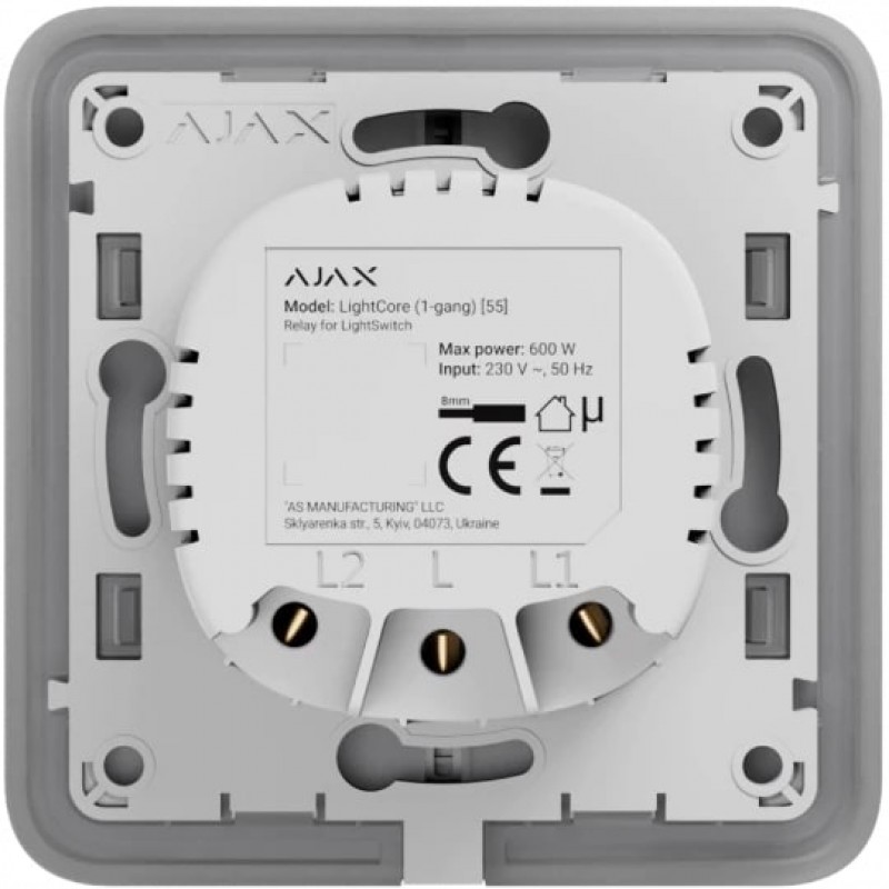 • Ajax Реле одноклавішний вимикач LightCore 1-gang for LightSwitch Jeweler, бездротовий