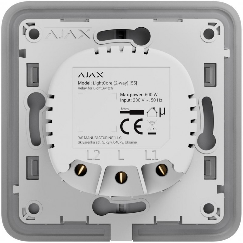 Сумісність з кнопкою: Ajax SoloButton (2-gang), Ajax CenterButton (2-gang), Ajax SideButton (2-gang)