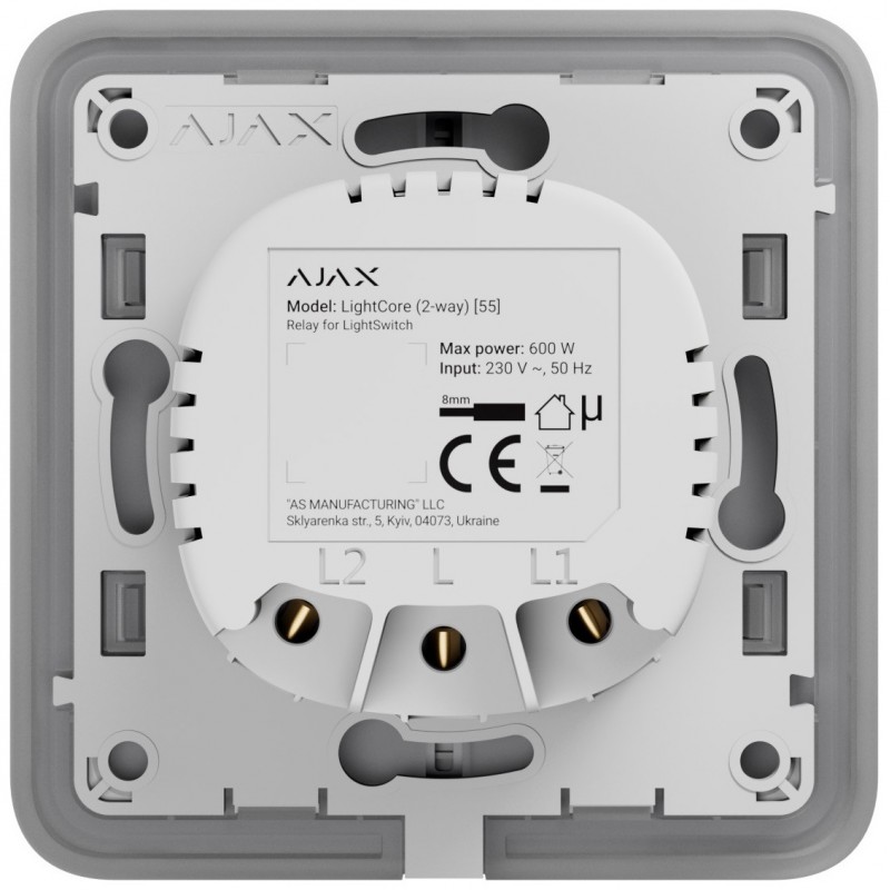 Сумісність з кнопкою: Ajax SoloButton (1-gang / 2-way), Ajax CenterButton (1-gang / 2-way), Ajax SideButton (1-gang / 2-way)