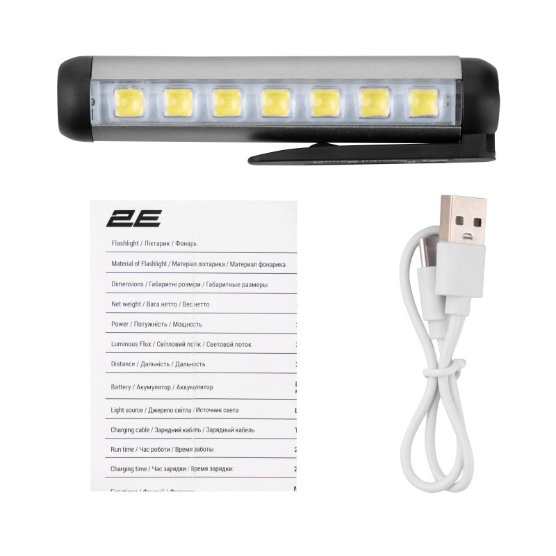 Універсальний ручний ліхтар 2E-PYB145BI оснащений якісним 1×XPE + 7×COB LED-світлодіодом зі світловим потоком 300 лм та потужністю 3 Вт. Дальність світла становить 50 м. Надійний корпус виготовлено з ударостійкого алюмінієвого сплаву + ABS. Забезпечено клас захисту на рівні IPx4.