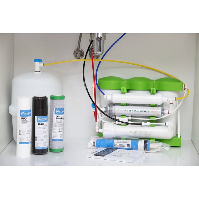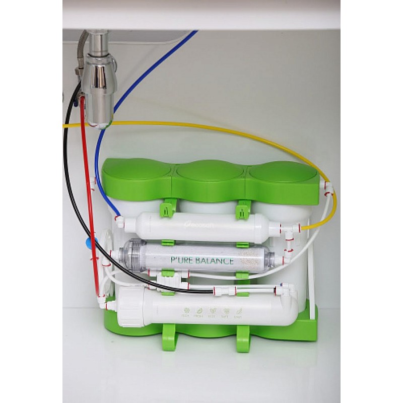 Фільтр зворотного осмосу Ecosoft P'URE Balance, мембрана 75gpd DuPont, картридж Balance збагачує воду кальцієм і магнієм, дренаж 1:1