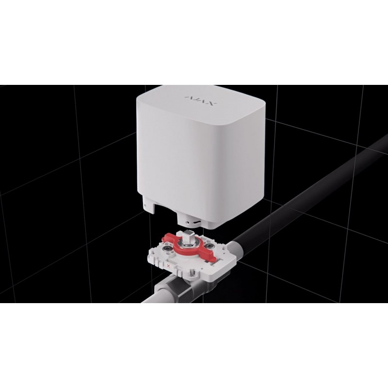 WaterStop створений для дистанційного управління подачею води на об'єкті. Пристрій поєднує запірний кран і електропривод. Керувати WaterStop можна з будь-якої точки світу, де є інтернет — програми Ajax дозволяють перевірити стан і змінити положення крана в будь-який момент. По тривозі LeaksProtect або стороннього датчика протікання WaterStop автоматично перекриє воду за 5 секунд. Повідомлення про тривогу та спрацювання сценарію отримають усі користувачі системи. Крім сценарію по тривозі датчика протікання, інженер монтажу може налаштувати перекриття води за розкладом або при зміні режиму охорони.
