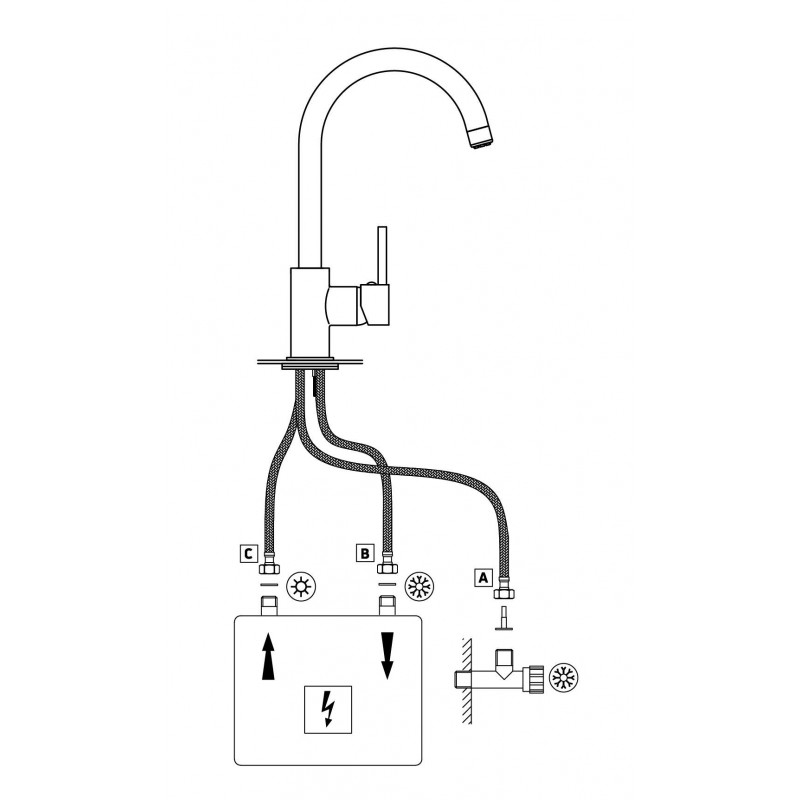 Deante Змішувач для кухні Low pressure, довж.виливу - 183мм, поворотний, 1важіль, 3-е підкл., хром