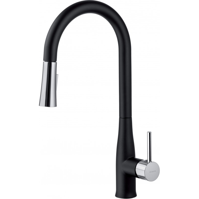 Deante Змішувач для кухні Lukrecja, довж.виливу - 229мм, витяжний, 1 важіль, чорний-хром