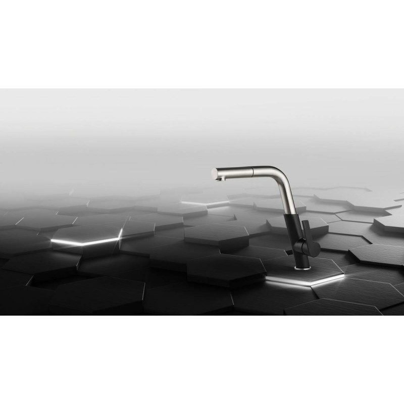 Deante Змішувач для кухні Silia, довж.виливу - 232мм, витяжний, 1 важіль, чорний-сталь