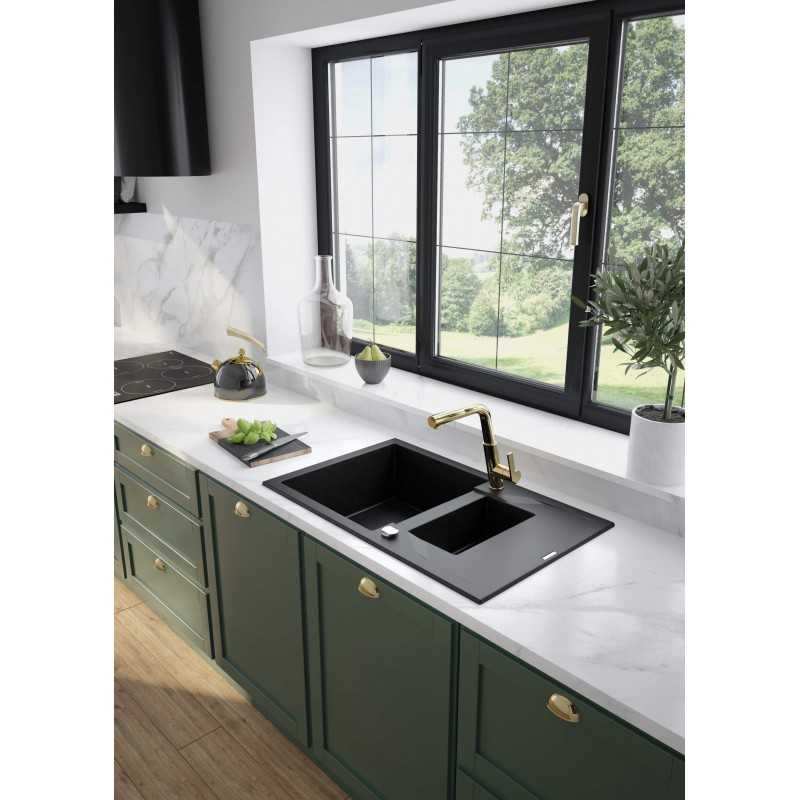 Deante Змішувач для кухні Silia, довж.виливу - 233мм, витяжний, 1 важіль, золотий