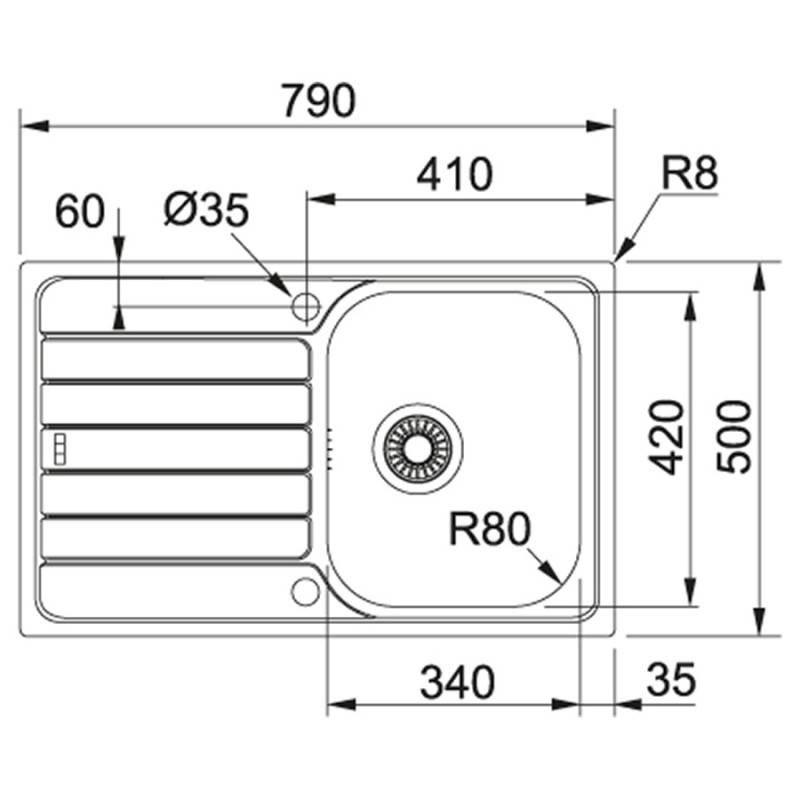 Franke Мийка кухонна Spark, нерж.сталь, прямокутник, з крилом, 790х500х160мм, чаша - 1, накладна, SKL 611-79, нерж декор